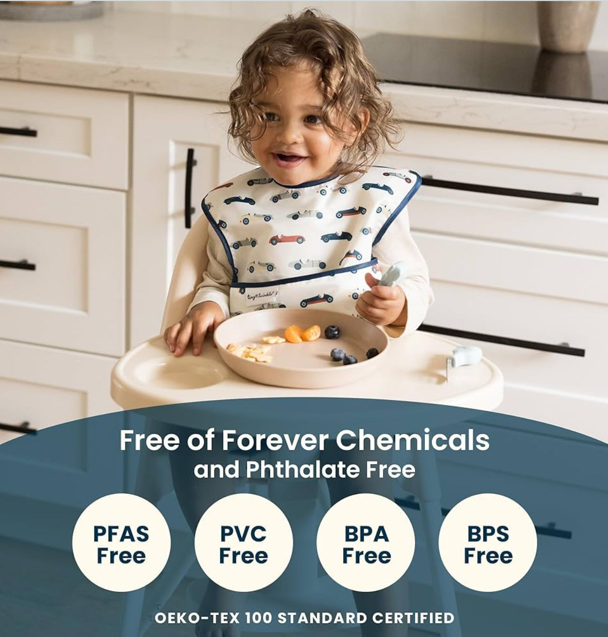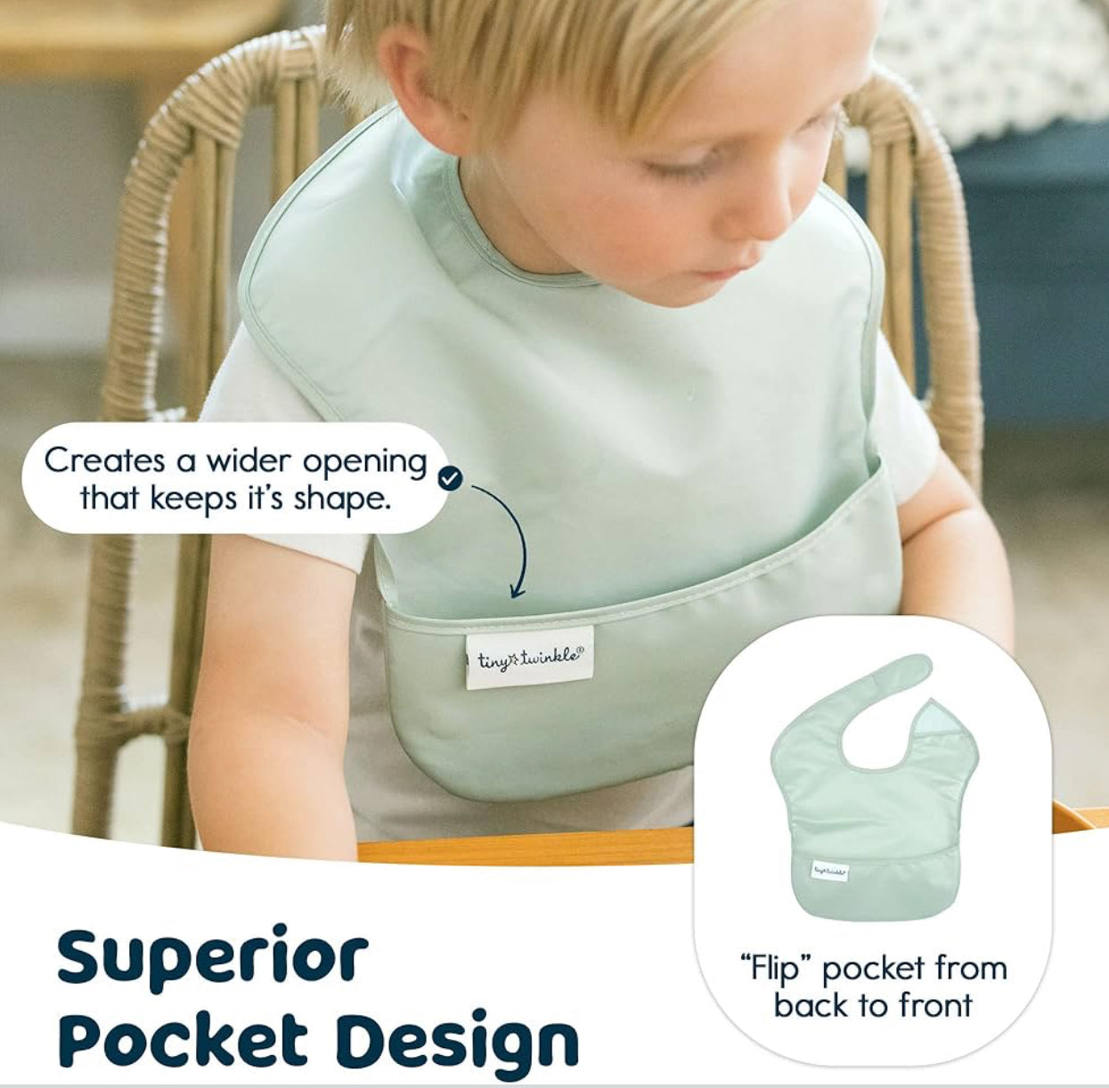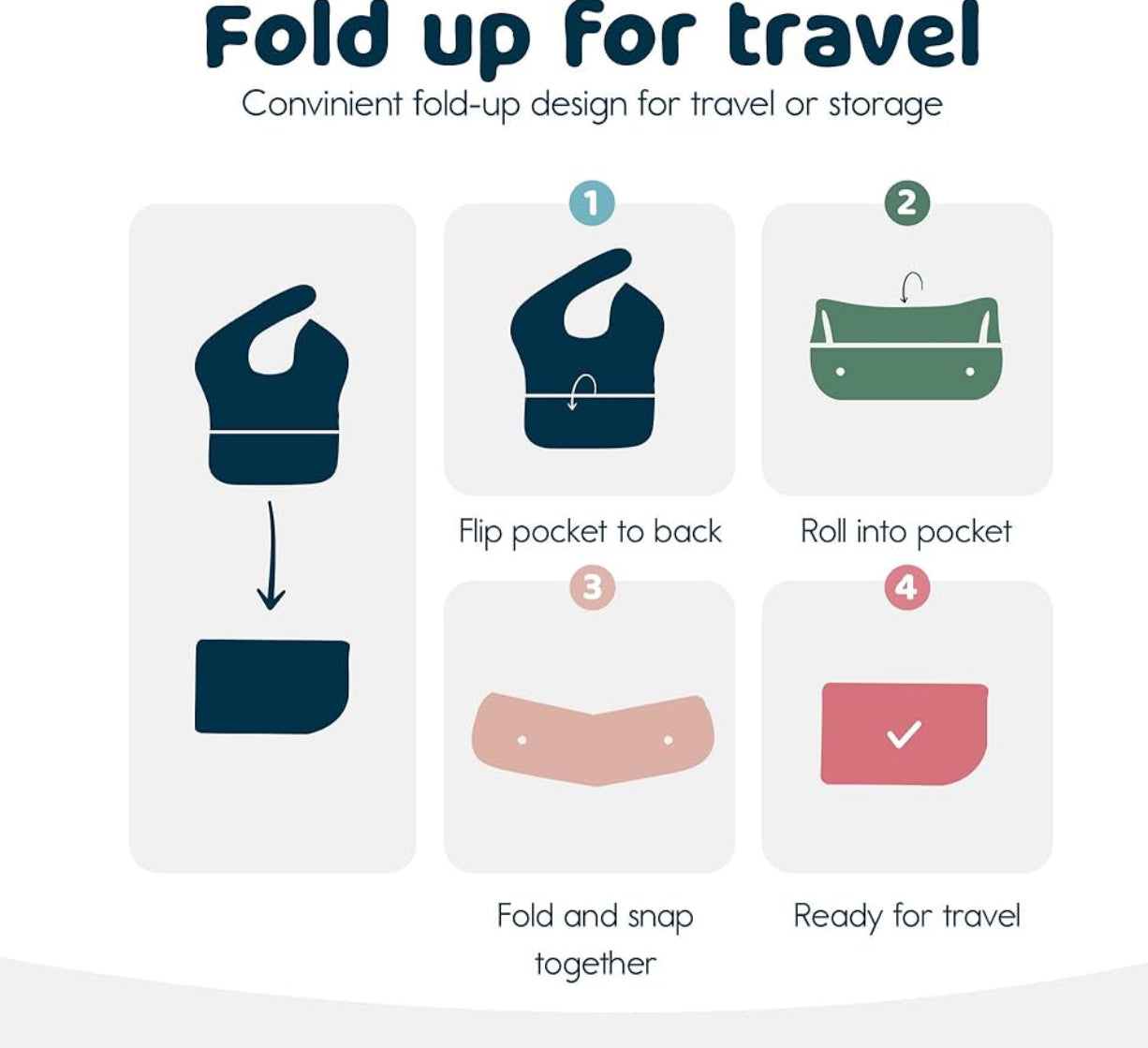 - Mess-Proof Mealtime: Our Easy Bib features a deep catch-all pocket that captures crumbs and spills, keeping clothes and tables clean. The lightweight, water-repellent fabric makes every meal simple and mess-free.